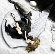 sere  los  ojos  y  al  abrirlos  desaparesi  esa  imagen................ pero  pude  ver  una  de  mina  en forma  humana  kuando era  niña... sus  alas  eran  blancas  y  junto  a ella  estaba un  lobo